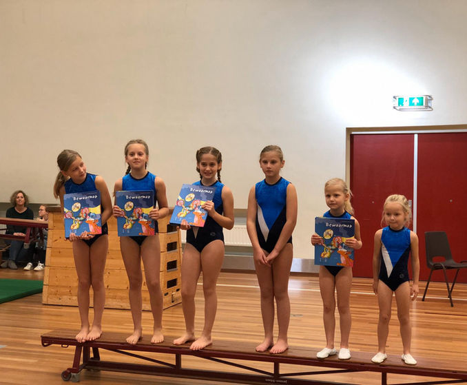 Drie keer per jaar toetst een jury of de oefeningen perfect worden uitgevoerd. Maar liefst 20 gymnasten deden mee om hun oefeningen te laten toetsen. Iedereen die alle 11 basis gymmie’s heeft verdiend krijgt een bronzen gymmie in zijn/haar mapje. Diegene die 22 gymmie’s heeft verdiend krijgt een zilveren gymmie.